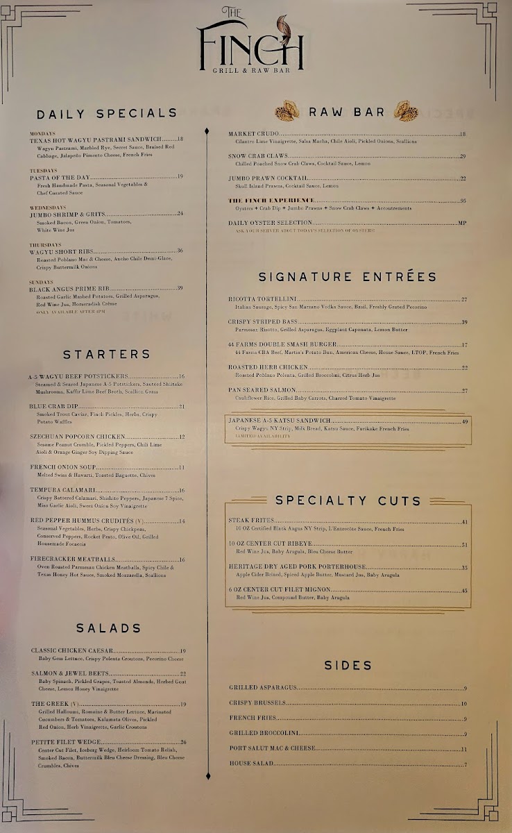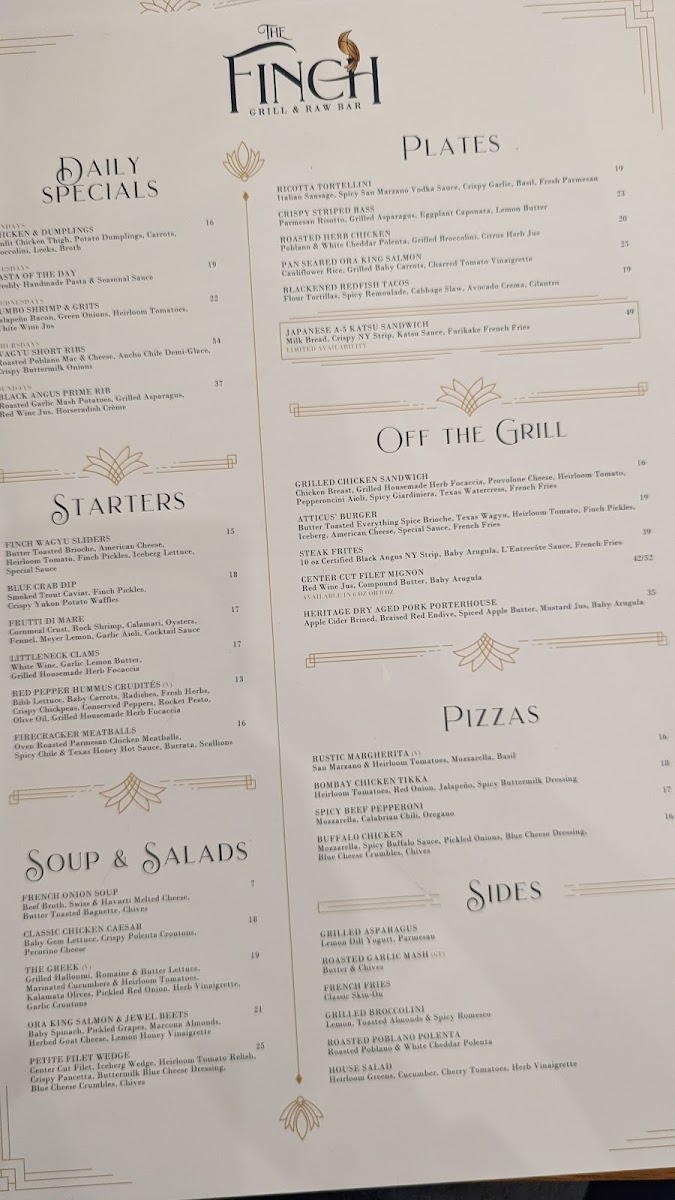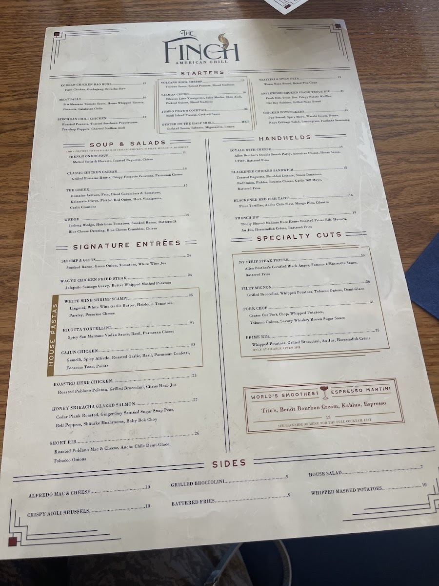 Welcome to The Finch, a culinary gem nestled in Dallas that promises a delightful dining experience. This eatery merges creative flavors with a relaxed atmosphere, making it perfect for both special celebrations and casual outings. The menu showcases an array of enticing starters like Volcano Rock Shrimp and Korean Chicken Bao Buns, each dish bursting with flavor and creative flair. For those seeking a hearty brunch, the Short Rib Hash and delectable Brunch Tacos are standout options that highlight the kitchen's commitment to quality.